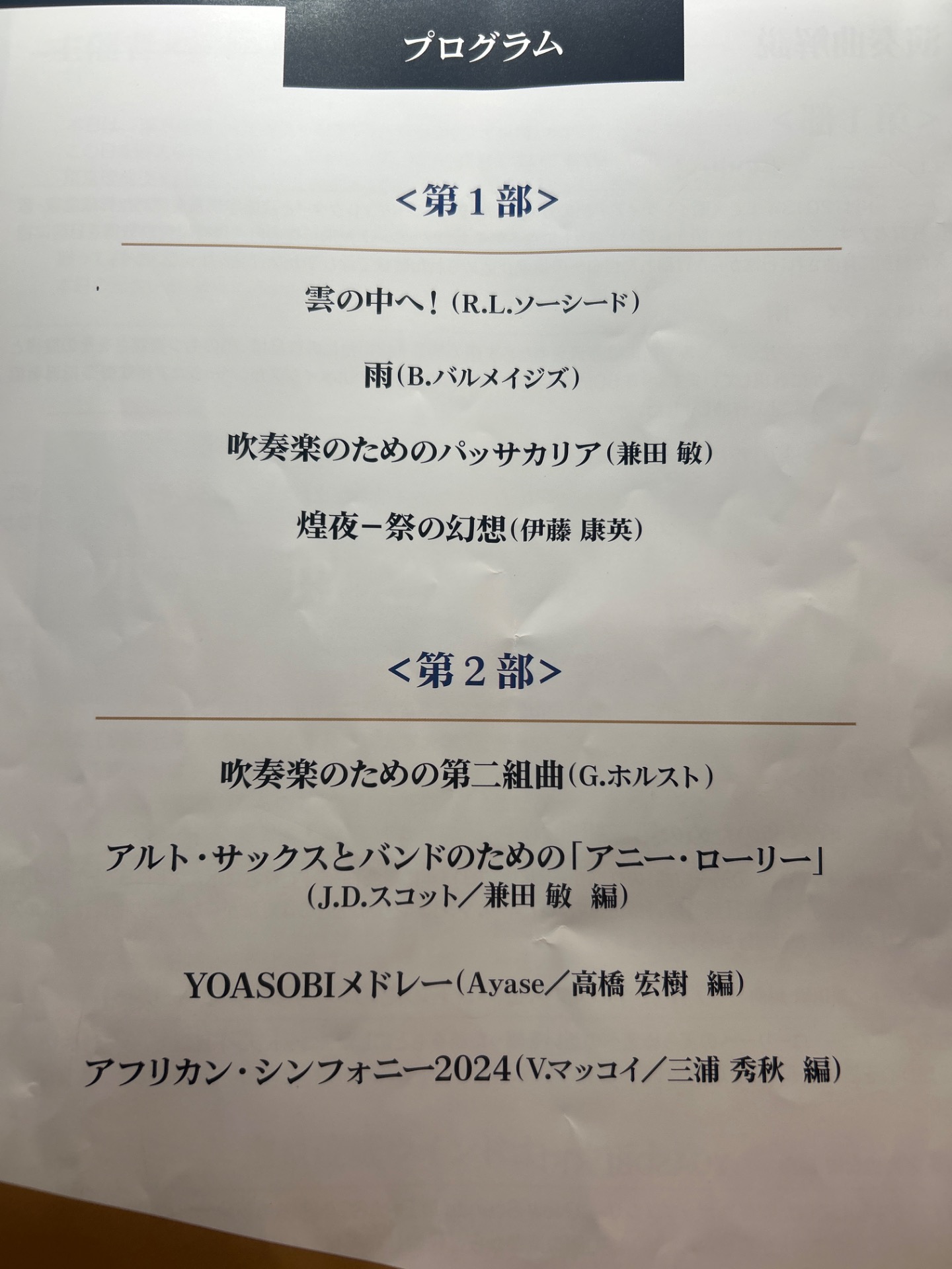 久々ブラスを堪能させていただきました。私も中学校ではパーカッションでしたので、どうしてもそちらに目が行きます。